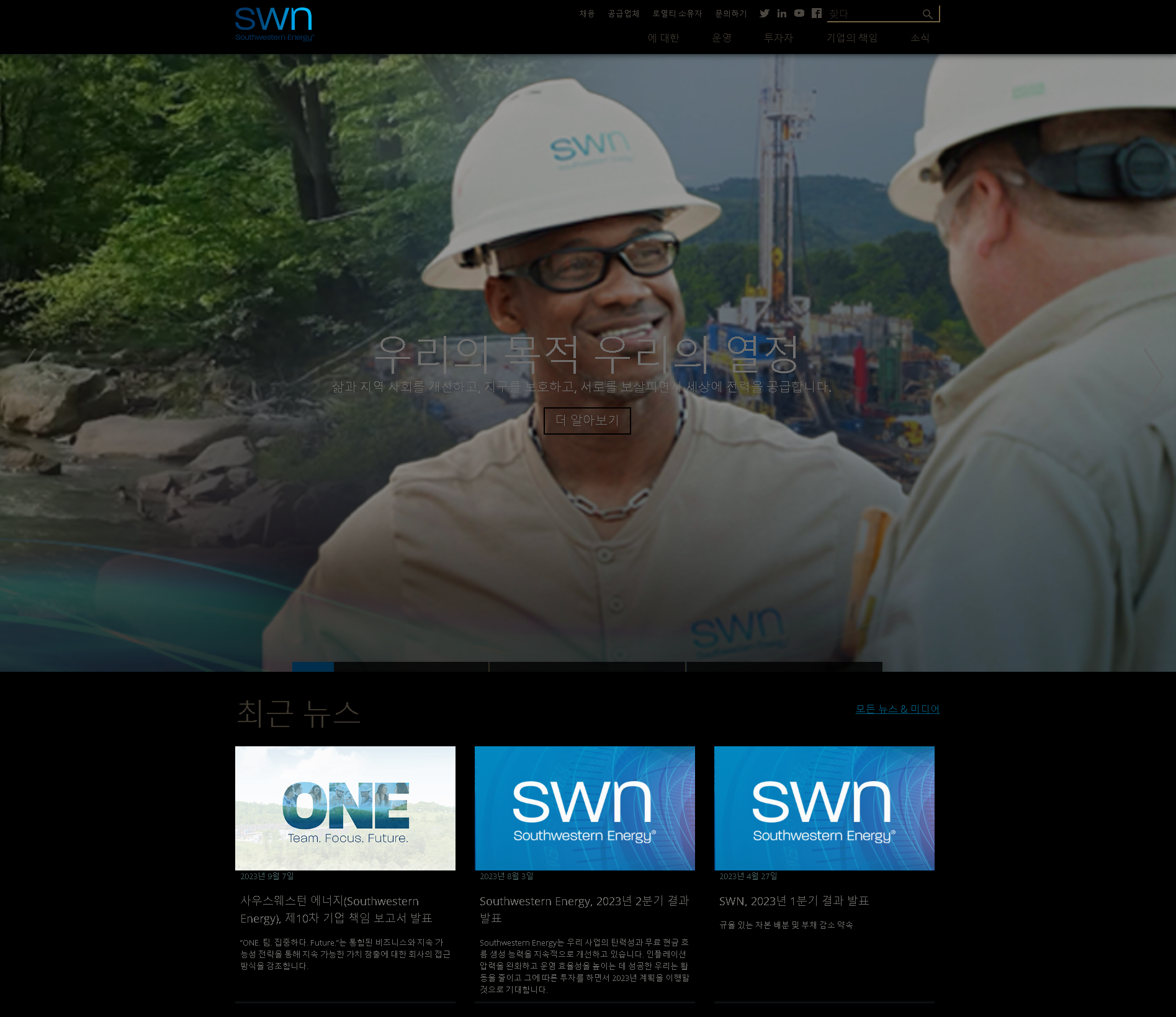 Southwestern Energy Company(NYSE: SWN)는 미국에서 가장 많이 생산되는 셰일 가스 분지에서 대규모 에너지 자산을 책임감 있게 개발하는 데 주력하는 천연 가스 및 천연 가스 액체의 선도적인 미국 생산 및 마케팅 업체입니다. SWN의 수익 중심 전략은 규모, 재무 건전성 및 운영 실행을 활용하여 이해관계자를 위한 지속 가능한 가치를 창출하기 위해 노력합니다.