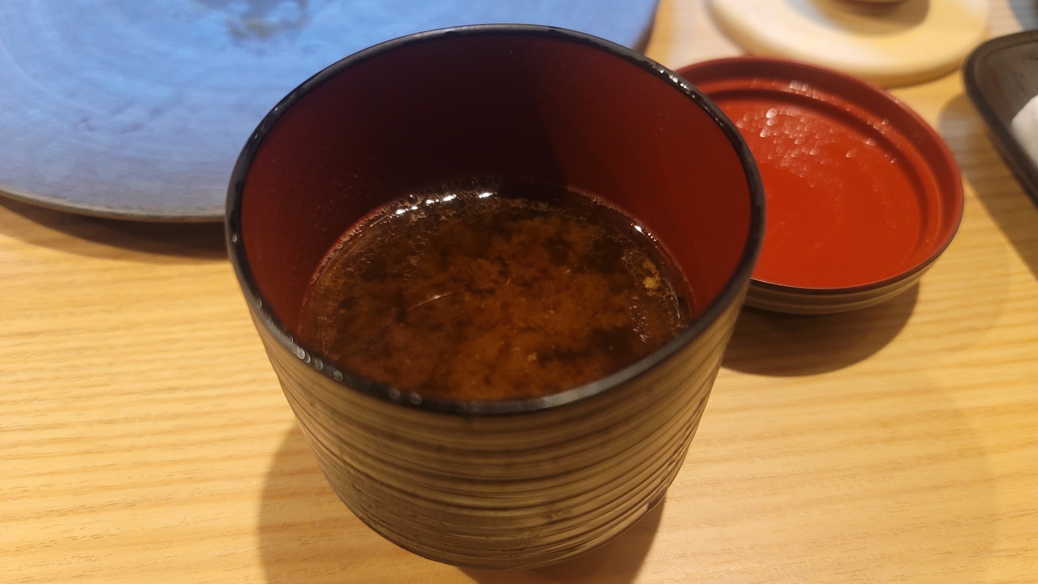 이렇게 마지막 스시까지 나오면 미소시루와 녹차와 디저트를 거의 동시에 줍니다.
