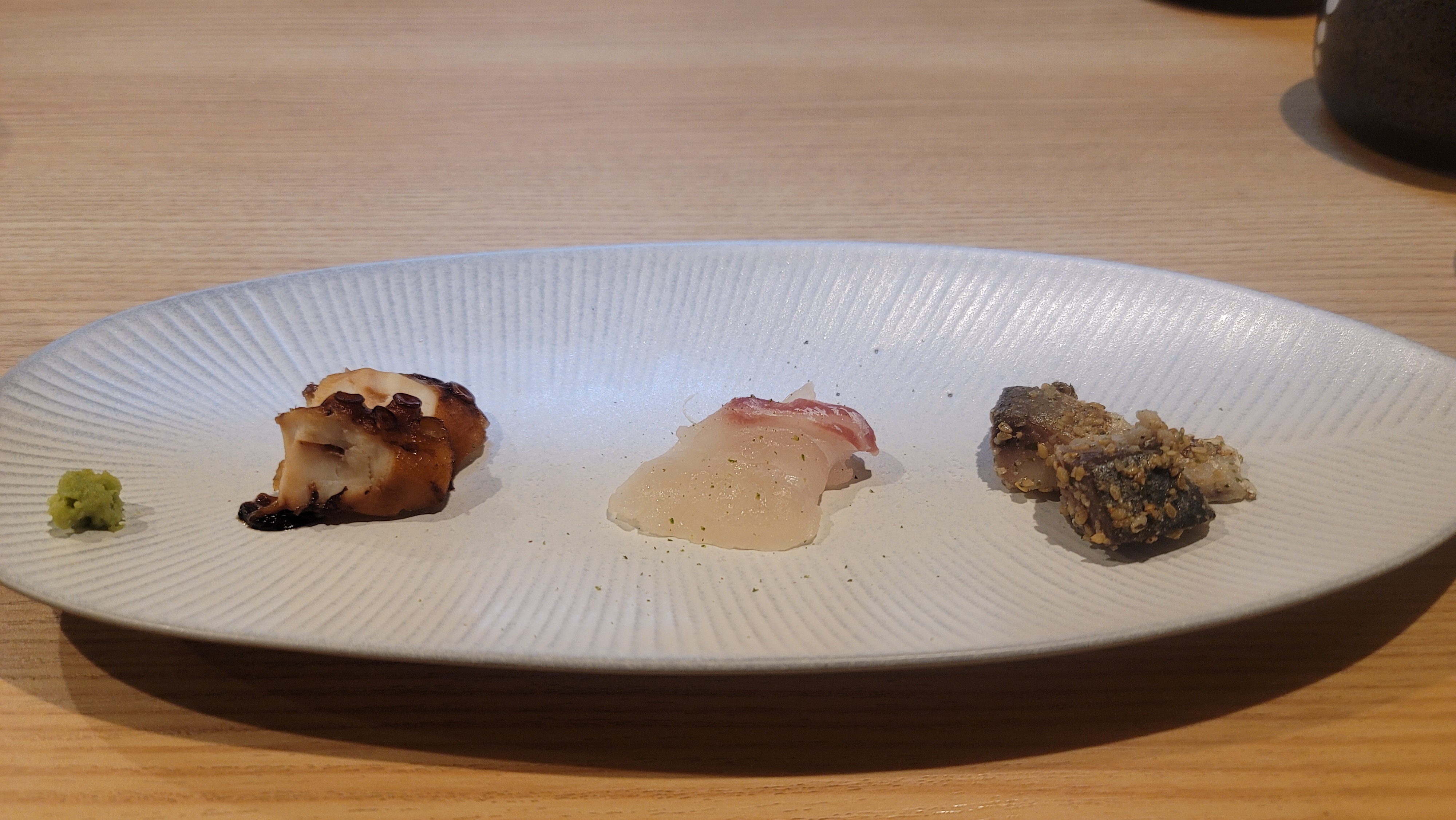 세가지 음식 타코,사시미,시메사바가 나오고 와사비는 타코와 드시면 됩니다. 세가지 부드럽고 자극적이지 않고 맛있었습니다