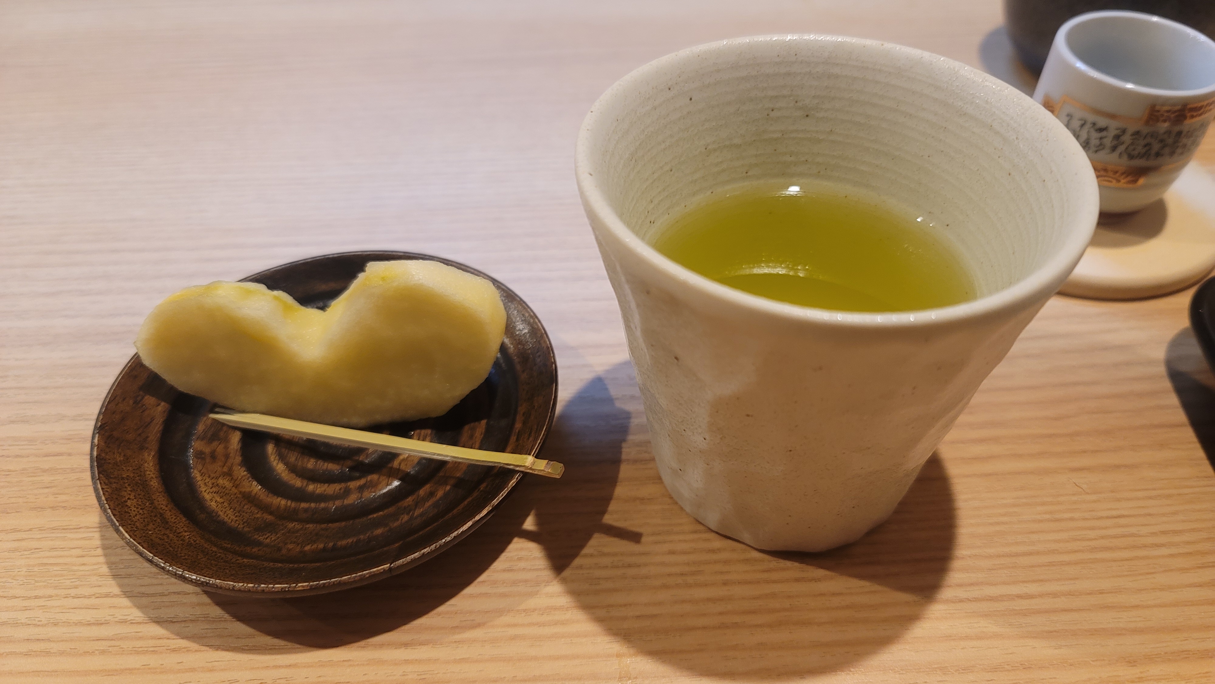 사과와 녹차 아오모리 사과였나 아무튼 유명한 사과와 녹차를 마지막으로 먹고 오마카세를 마무리 했습니다.