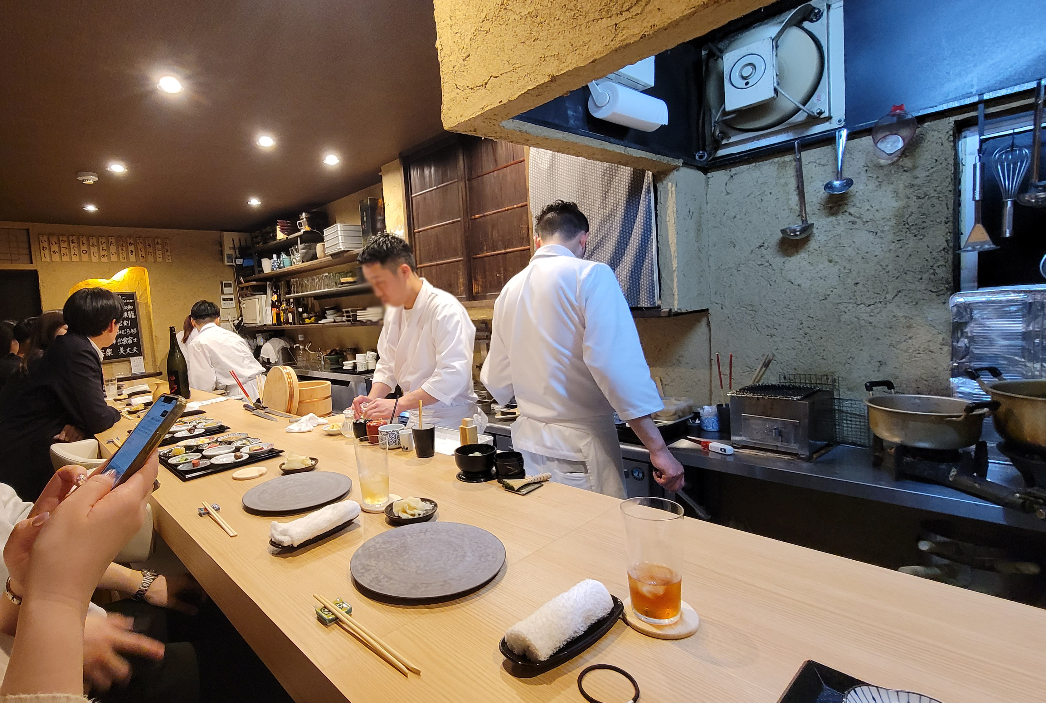 스시 이코우 주방 분위기 각자 자기의 역할이 있어서 가운데 분이 계속 메인 스시요리를 담당하시고 오른쪽분은 전채요리 셋팅과 간단한 음식 셋팅,차완무시 조리같은 것을 담당하시고 왼쪽에 계시는 분은 왼쪽편 테이블을 담당하시는것 같고 여성분은 마실것과 계산쪽을 담당하시는 것 같습니다.
