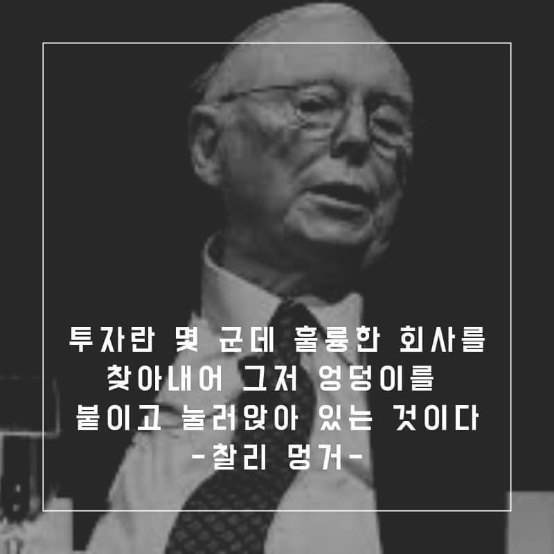 투자란 몇 군데 훌륭한 회사를 찾아내어 그저 엉덩이를 붙이고 눌러앉아 있는 것이다. - 찰리멍거