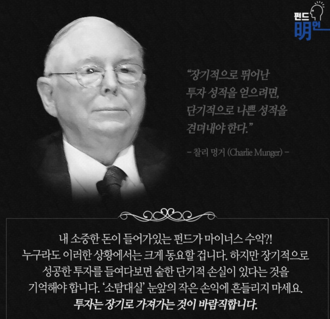 찰리멍거 "장기적으로 뛰어난 투자 성적을 얻으려면, 단기적으로 나쁜 성적을 견뎌내야 한다." - 찰리 멍거(Charlie Munger)