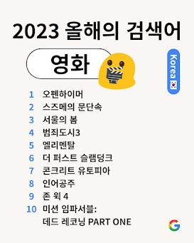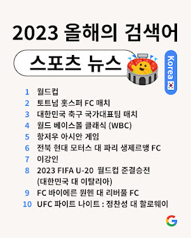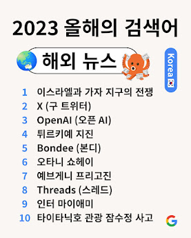 2023년도 올해의 검색어에서는 글로벌의 검색어 리스트 중 세 가지 부문에서 한국 관련 검색어가 다시 한번 순위에 올라 큰 주목을 끌었습니다.