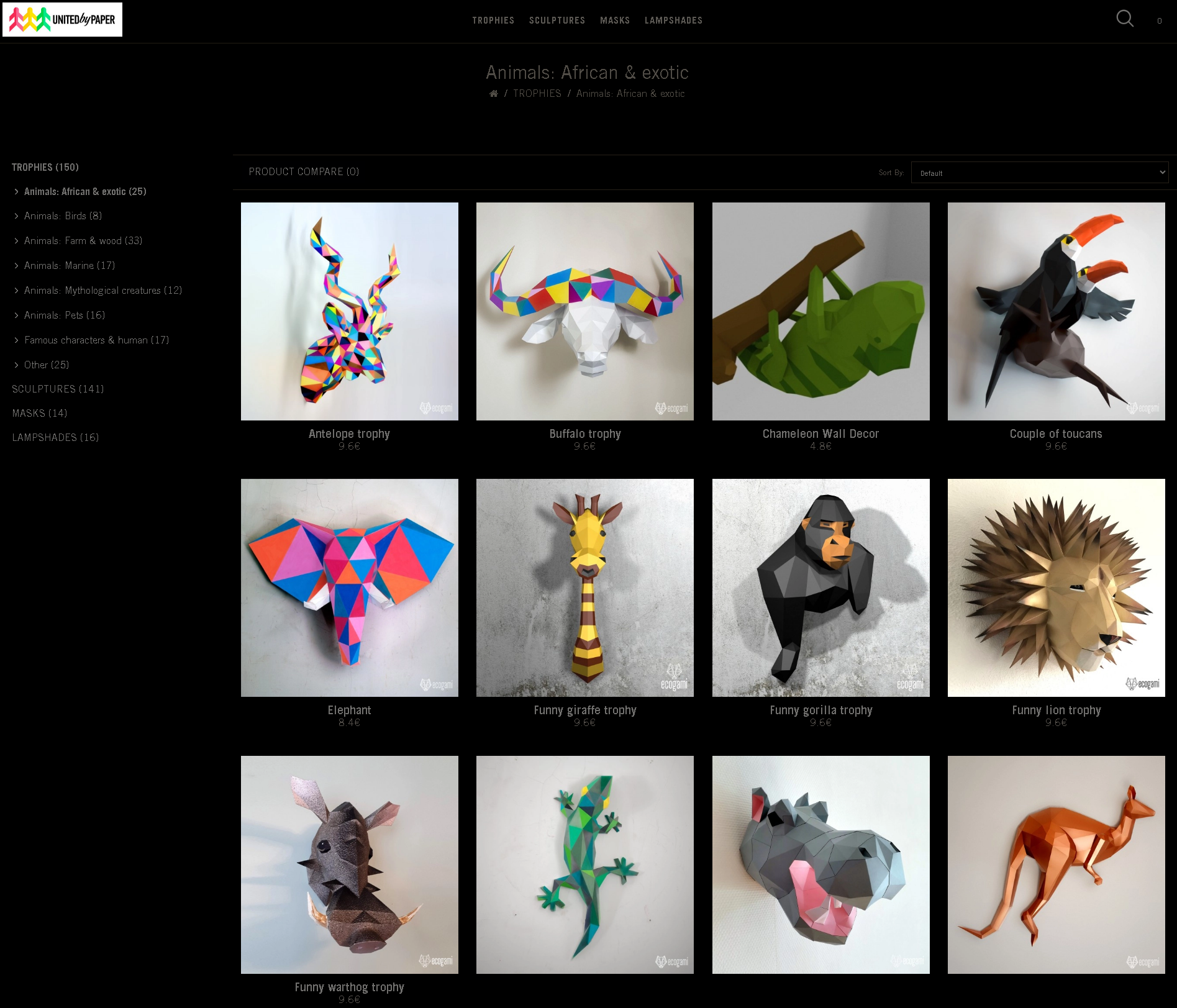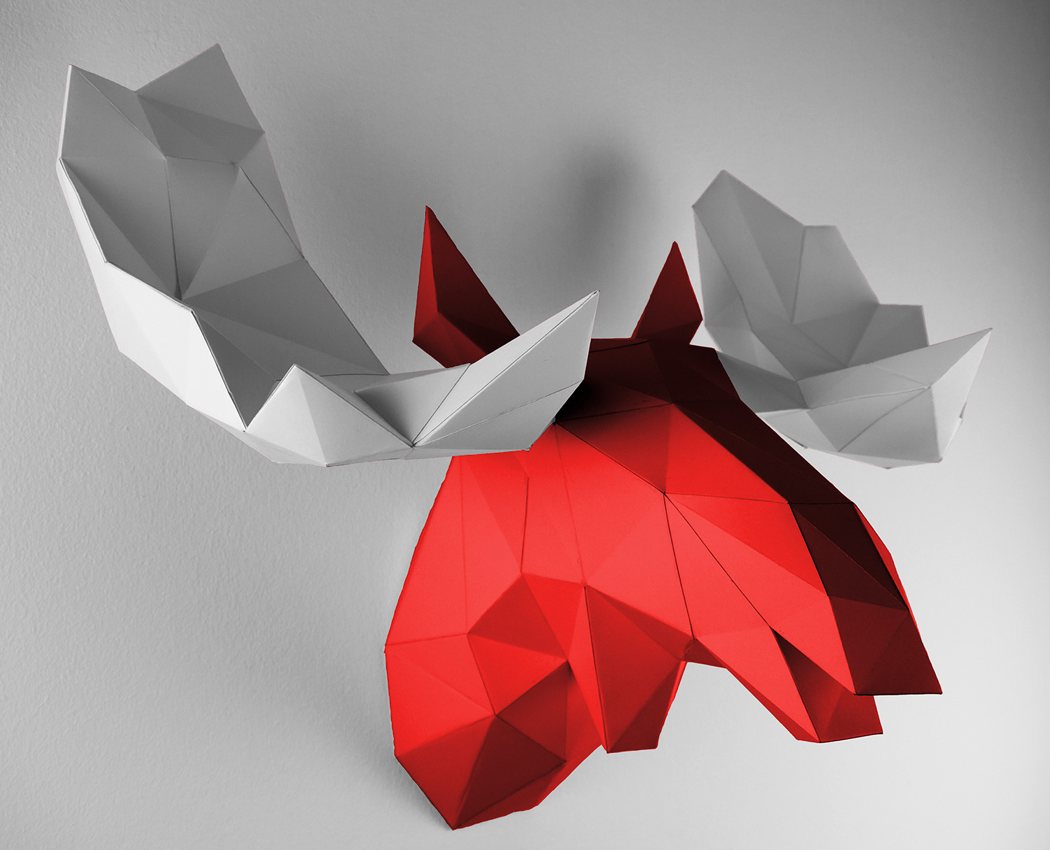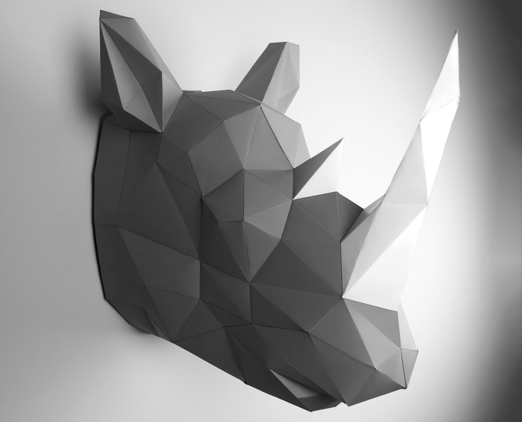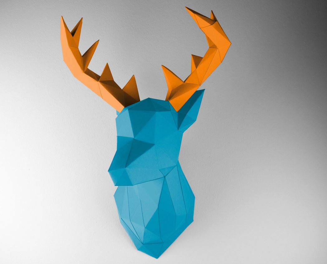 Design walltrophies and animal heads made out of paper.